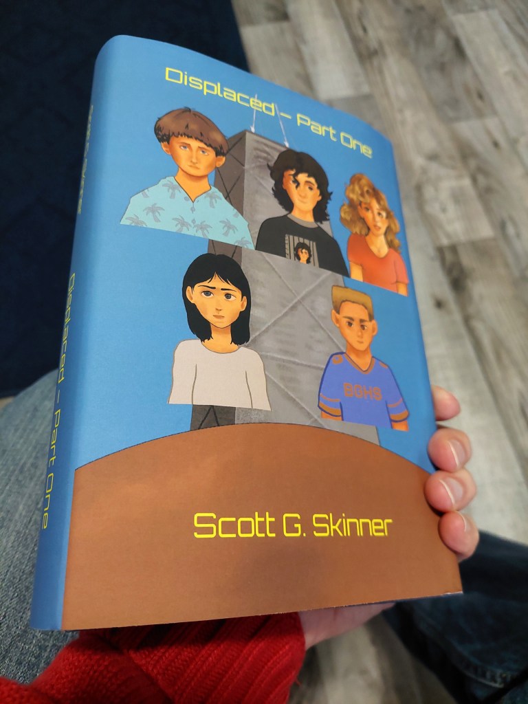 Hooray! After 2.5 years of writing, rewriting, more rewriting, and still more rewriting, I’m pleased to announce that my debut novel, “Displaced – Part One,” is available for sale on Amazon as a Kindle ebook. Although I missed my pre-Thanksgiving publishing goal mentioned in my previous post, I did succeed in my back-up goal of publishing before Christmas. Shew! At the time I write this – 12/16/23 – the only pending task with some urgency is to share the link for the hardcover once Amazon adds it to their inventory (anytime over the next 14 days). Meanwhile, here’s a picture of the author proof copy that I will forever treasure: